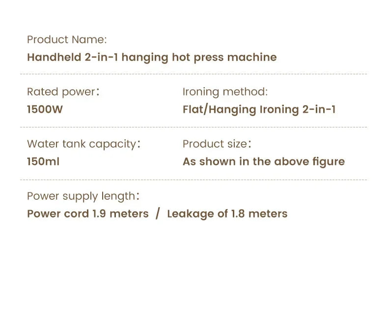 Machine à repasser à la main à la main 1500W Machine à repasser à main à plier pour vêtements Machine à repasser verticale portable à chaleur rapide pour vêtements